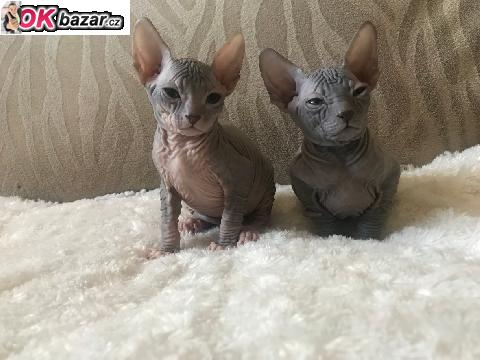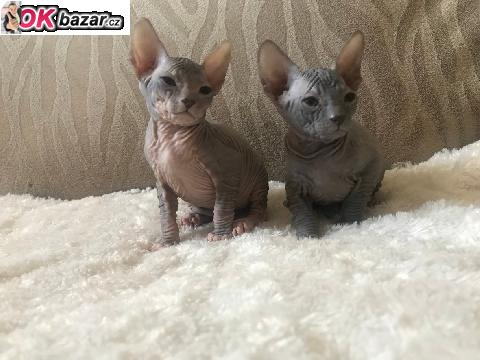 Sphynx kotatka na prodej (oba dva chlapecky). Jsou narozena 5.2.2019, pri odberu budou plne ockovana a odcervena. Jako spravny Don Sphynx nemaji na sobe ani chloupek, jako oba dva rodice! Jiz umi chodit na kocici WC. Jsou pritulna, naucena na kazdodenni ruch v domacnosti. Oba rodice jsou k videni u nas doma. ps: prosim odpovidejte pouze na email nebo tel. 8.000 Kc.